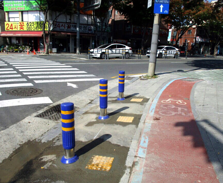 Cọc tiêu dẻo phản quang nhựa PE cao 75cm đế 25cm Hàn Quốc