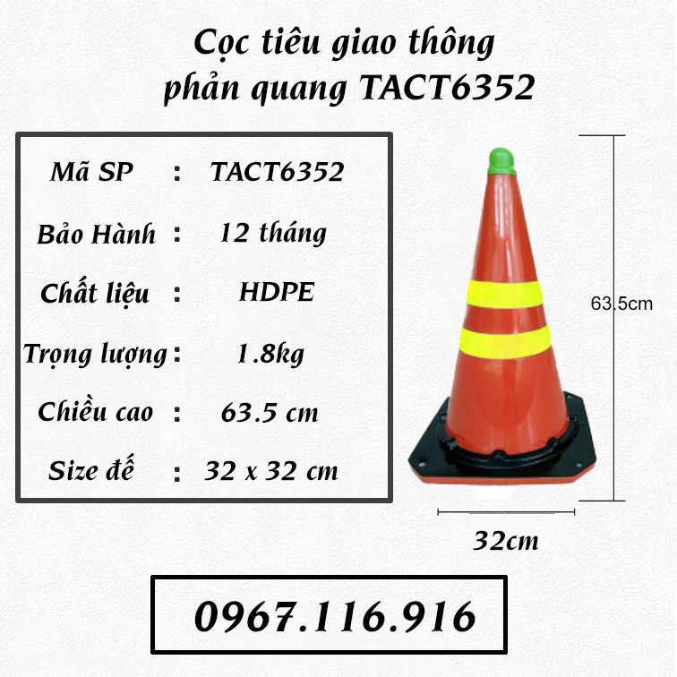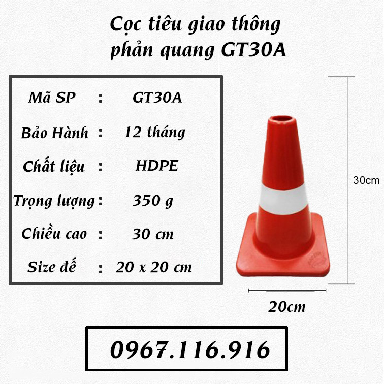 Cọc tiêu chóp nón GT.70ĐC – cao 70cm – nhựa cứng