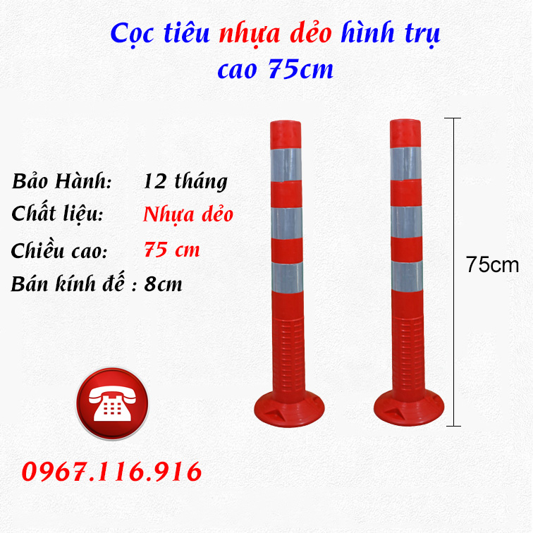 Cọc tiêu giao thông hình trụ 75cm bằng nhựa dẻo