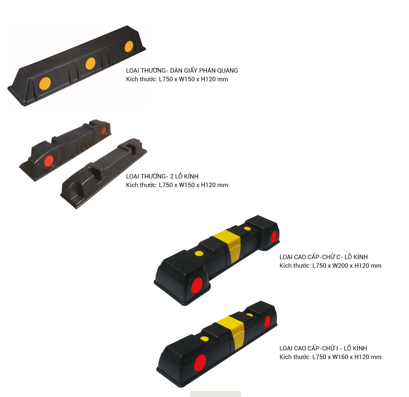 - Chặn lùi xe được làm từ nhựa PP, giúp sản phẩm có độ cứng cần thiết chịu được va chạm mạnh.