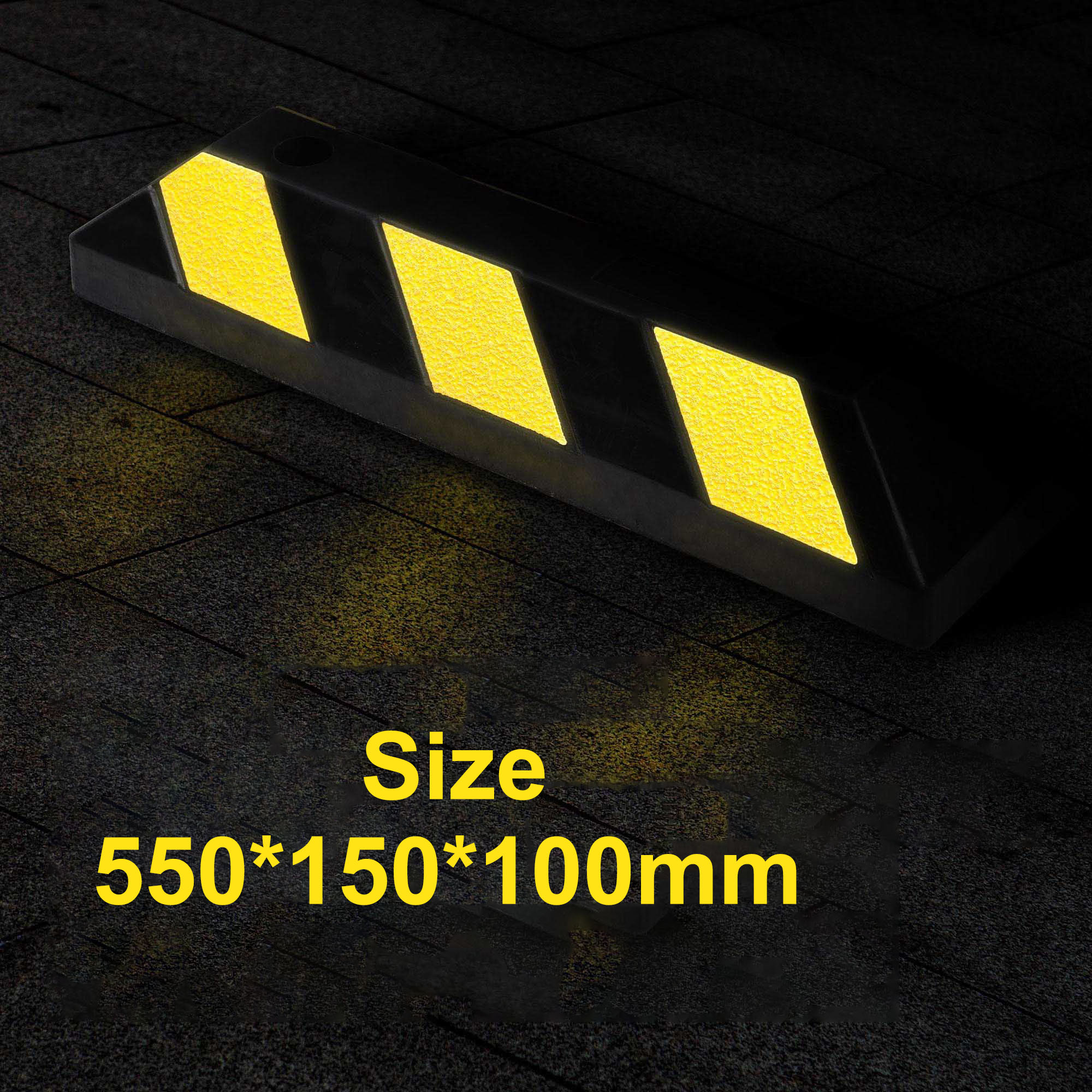 Chèn bánh xe ô tô với kích thước 550*150*100 mm là một trong những sản phẩm tốt chất lượng cao thường được dùng tại các bãi đổ xe, tầng hầm để xe nhằm cố định vị trí đổ xe, kèm với đó là phản quang to rõ giúp các xe dễ dàng đỗ và không va chạm nhau