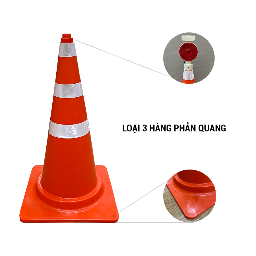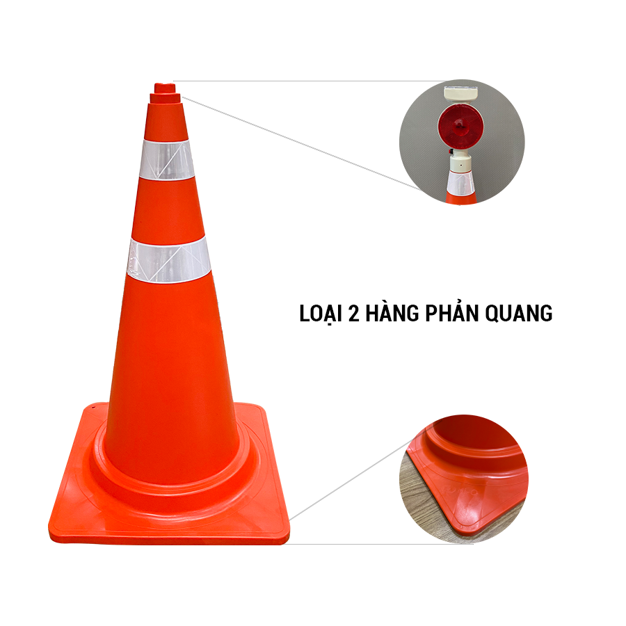 - Dải phản quang cỡ lớn được bố trí quanh thân chóp, giúp lái xe dễ dàng nhận biết.