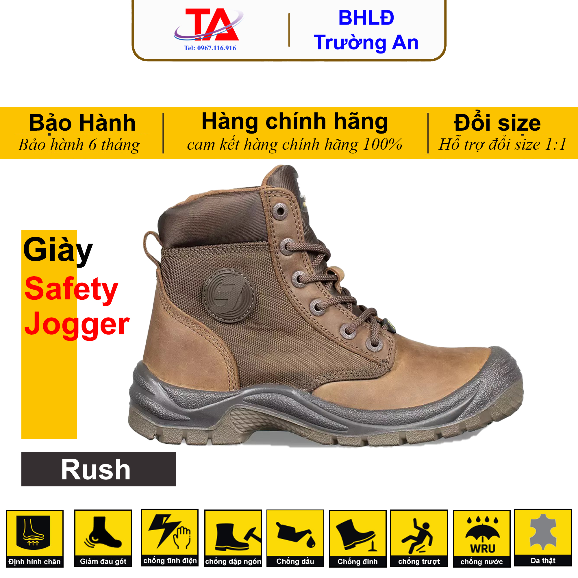 Trường An Safety là một trong những nơi bán giày safety jogger hàng đầu Việt Nam, chúng tôi bán hàng chính hãng jogger nếu bạn phát hiện hàng nhái hãng giả chúng tôi sẽ hoàn 200% tiền hàng cho bạn. Khi mua hàng tại Trường An bạn sẽ được phép bảo hành chính hãng cũng như chính sách hoàn trả hàng khi không đúng size…
