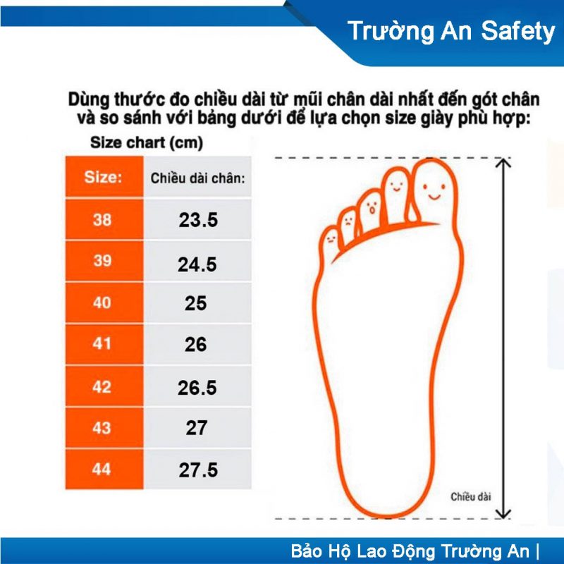 Bảng size giày bảo hộ Hans