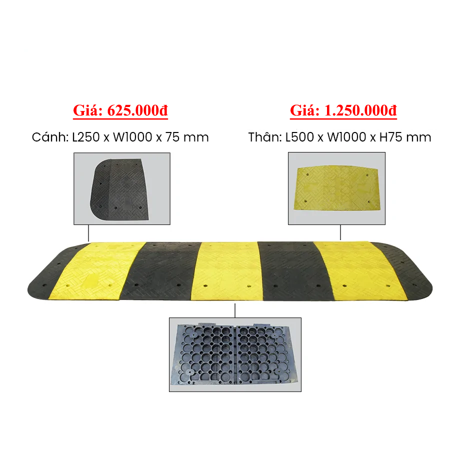- Mỗi sản phẩm đi kèm với 2 phần cánh cao su, cố định toàn bộ gờ giảm tốc, tạo thẩm mỹ cho sản phẩm.