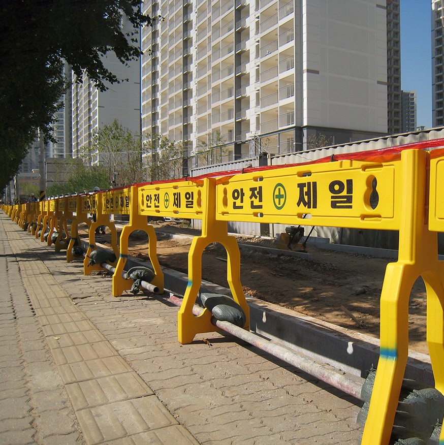 - Rào chắn làm bằng chất liệu HDPE nên có trọng lượng rất nhẹ, bên trong rỗng, cơ chế tháo lắp dễ dàng (cơ chế bản lề).