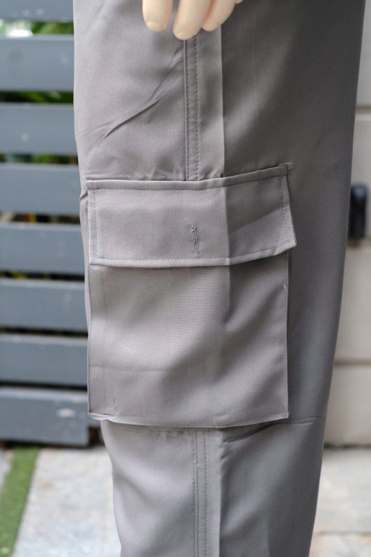 Quần áo bảo hộ lao động BH31 – quần có túi hộp, xám phối vàng-vải kaki chéo