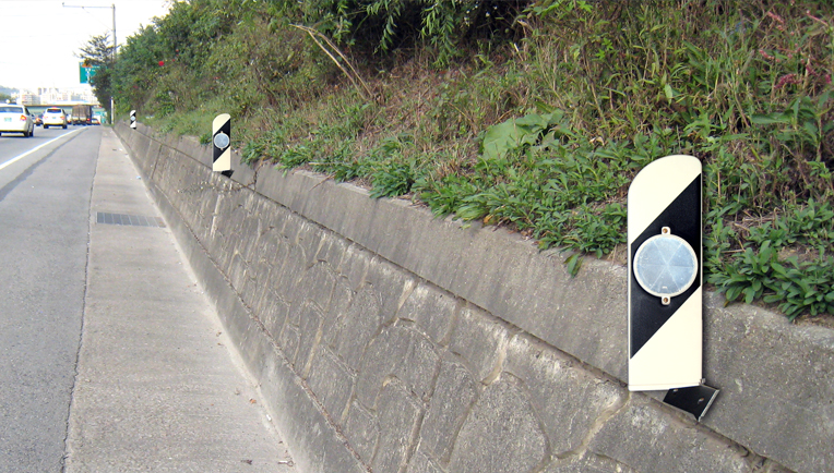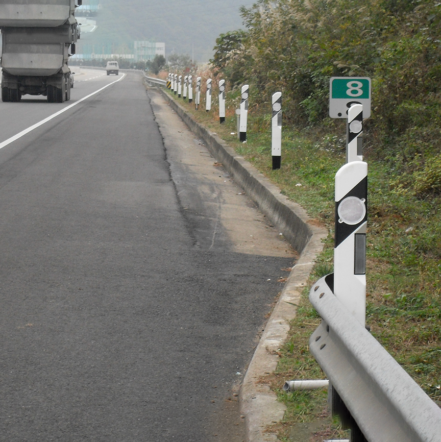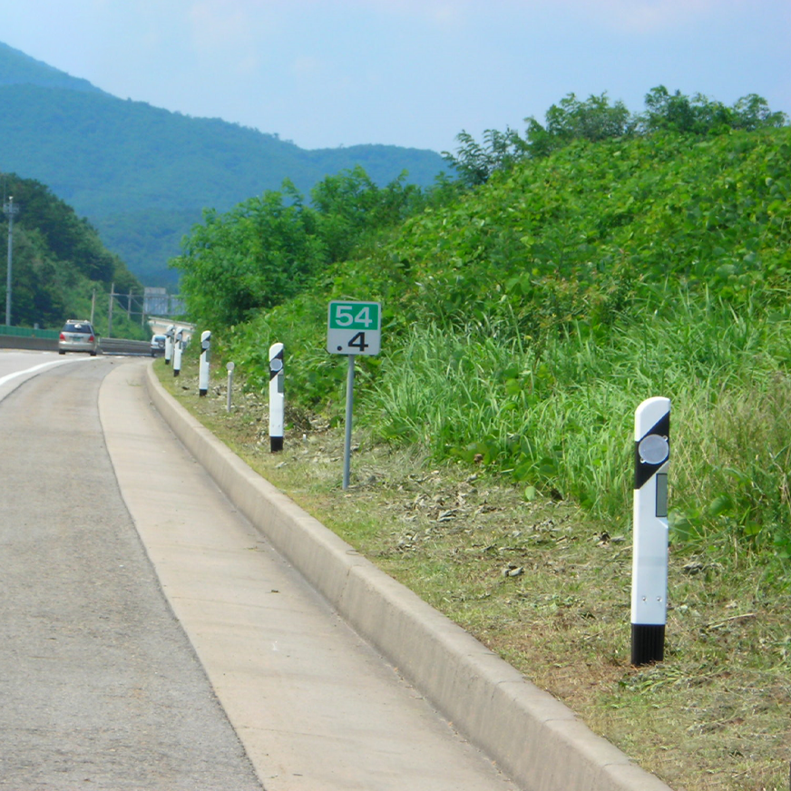 - Cọc tiêu cắm đất sử dụng kết hợp với taluy, hộ lan nhằm hỗ trợ nâng cao tầm nhìn cho lái xe trong điều kiện trời tối.